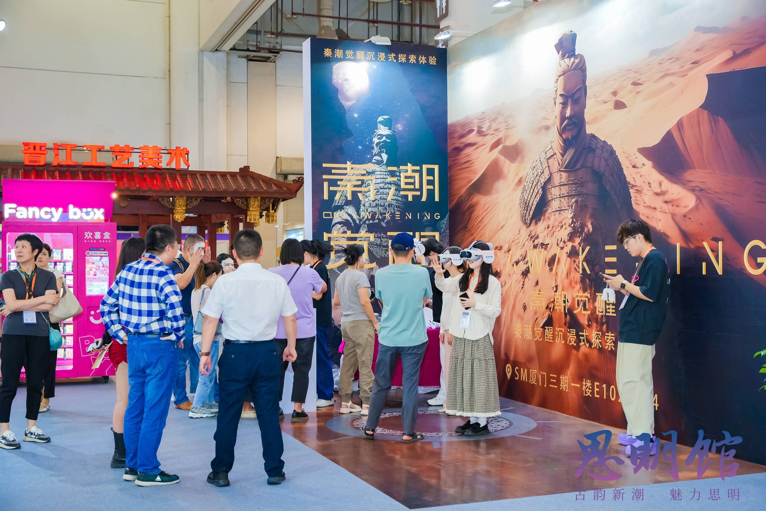 有的玩:思明区特别邀请“狄仁杰”在现场展示制茶中“出香”的一道工序——摇青,不仅让现场茶香四溢,更可以亲自上手一起摇;在数字文娱区,思明区重磅引进XR沉浸式探索体验项目“秦潮觉醒”,让参展市民和客商可以现场体验历史场景与数字化科技的完美结合。体验者戴上VR头显,立刻置身于另一个天地中,真切感受来自“异世界”的震撼;非遗博饼区以亮眼的中国红和巨大的博饼碗成功吸引了眼球,路过的市民和客商忍不住驻足参与,时不时从人群中传出的喝彩声,更让熟悉这项非遗民俗的参展人都忍不住会心一笑,真正地“来成功博一笑”。