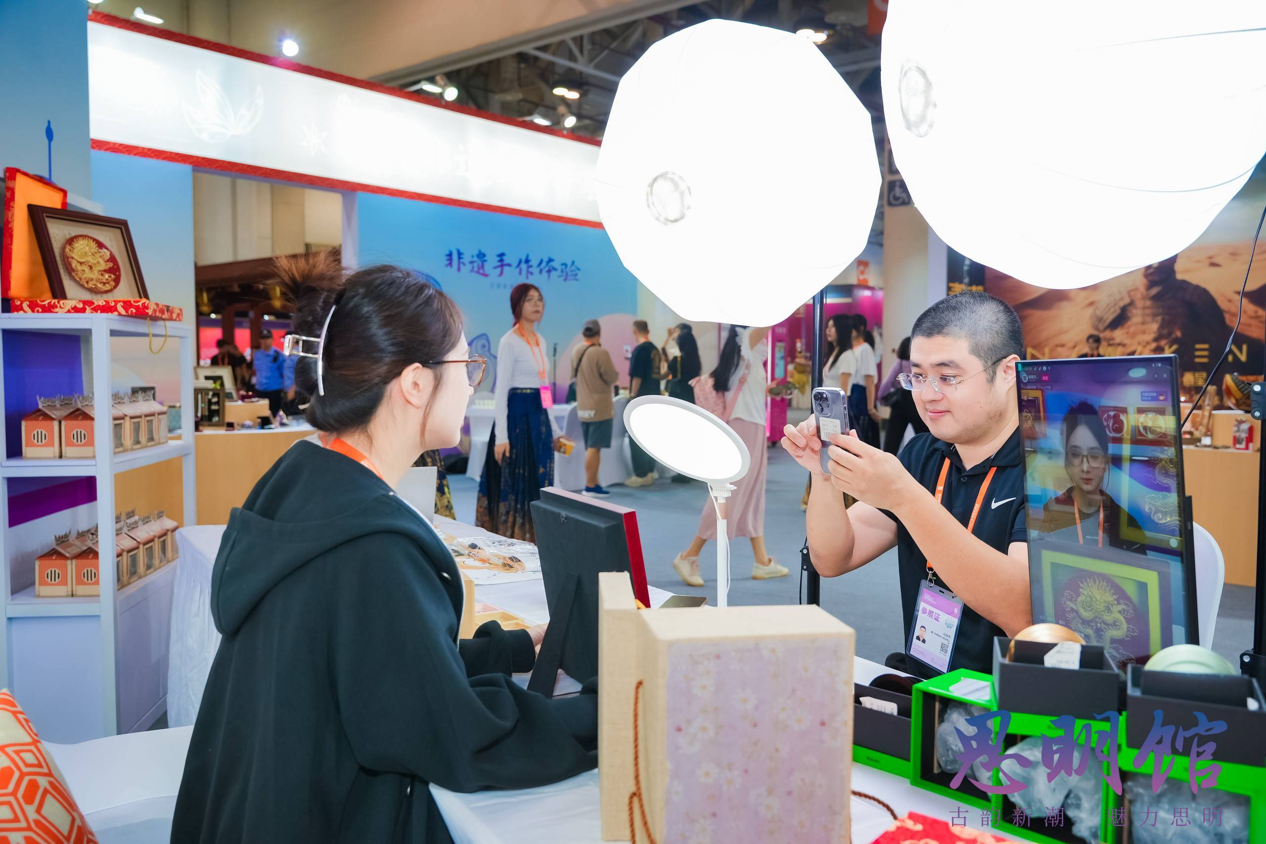 除此之外,思明区特地在主展馆设置了“思明文创好物”的直播间,对各类特色文创品进行直播讲解,让观众可以在高清镜头下欣赏思明文创品的美,聆听每个产品背后的故事,感受古韵思明的新潮魅力,将自己中意的产品收入囊中。
